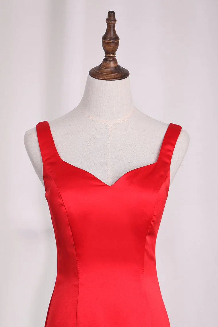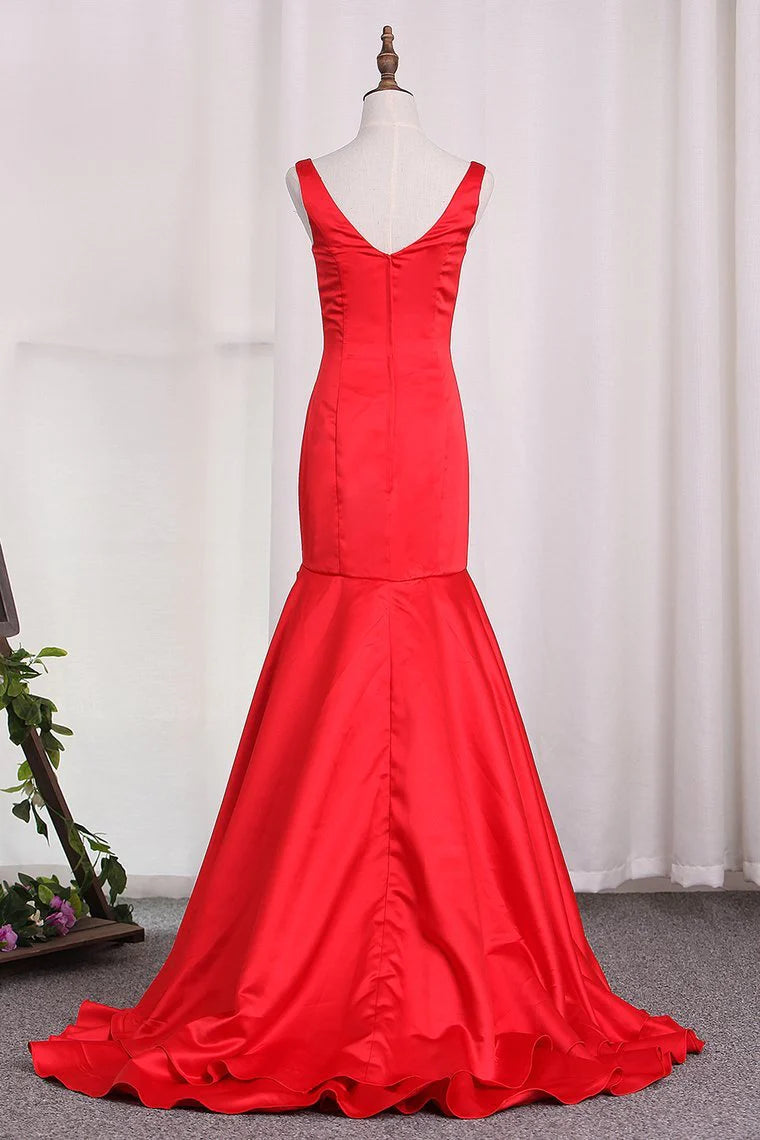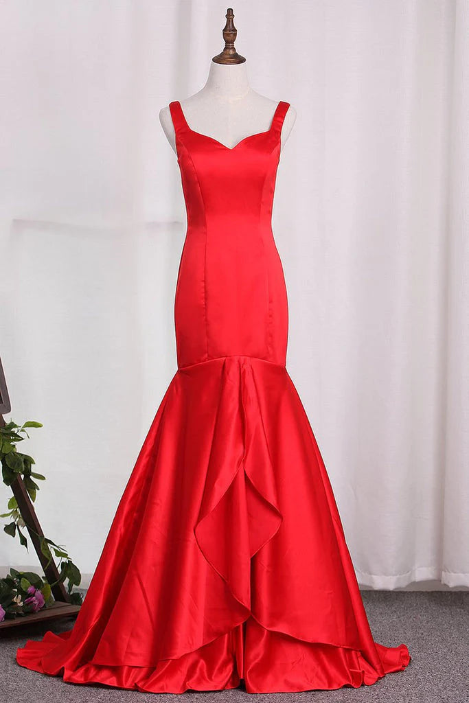 Satin Mermaid Straps Party Dresses Sweep Train Zipper Up