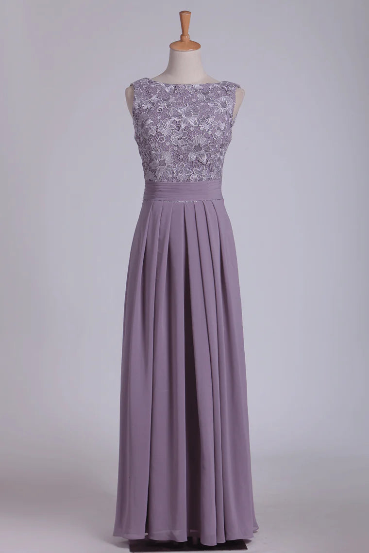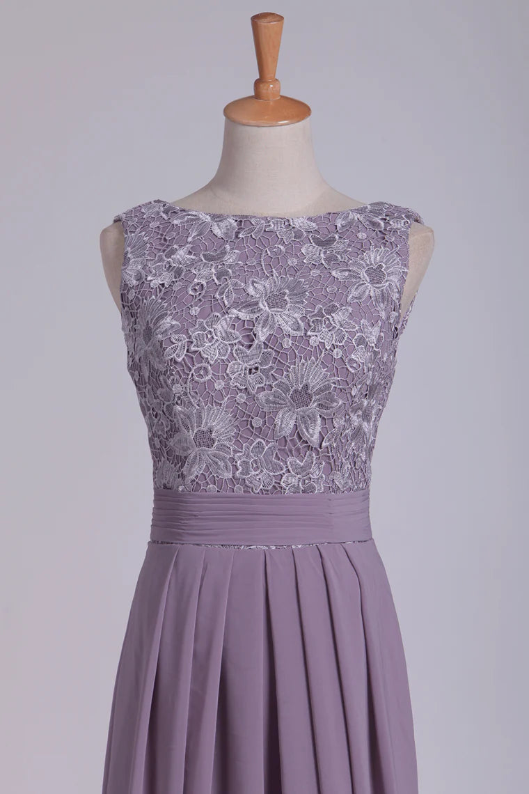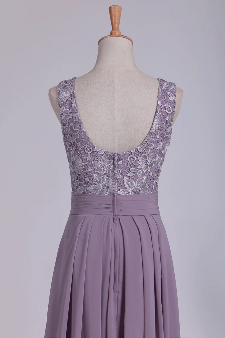 Scoop A Line Party Dresses Chiffon & Lace Floor Length