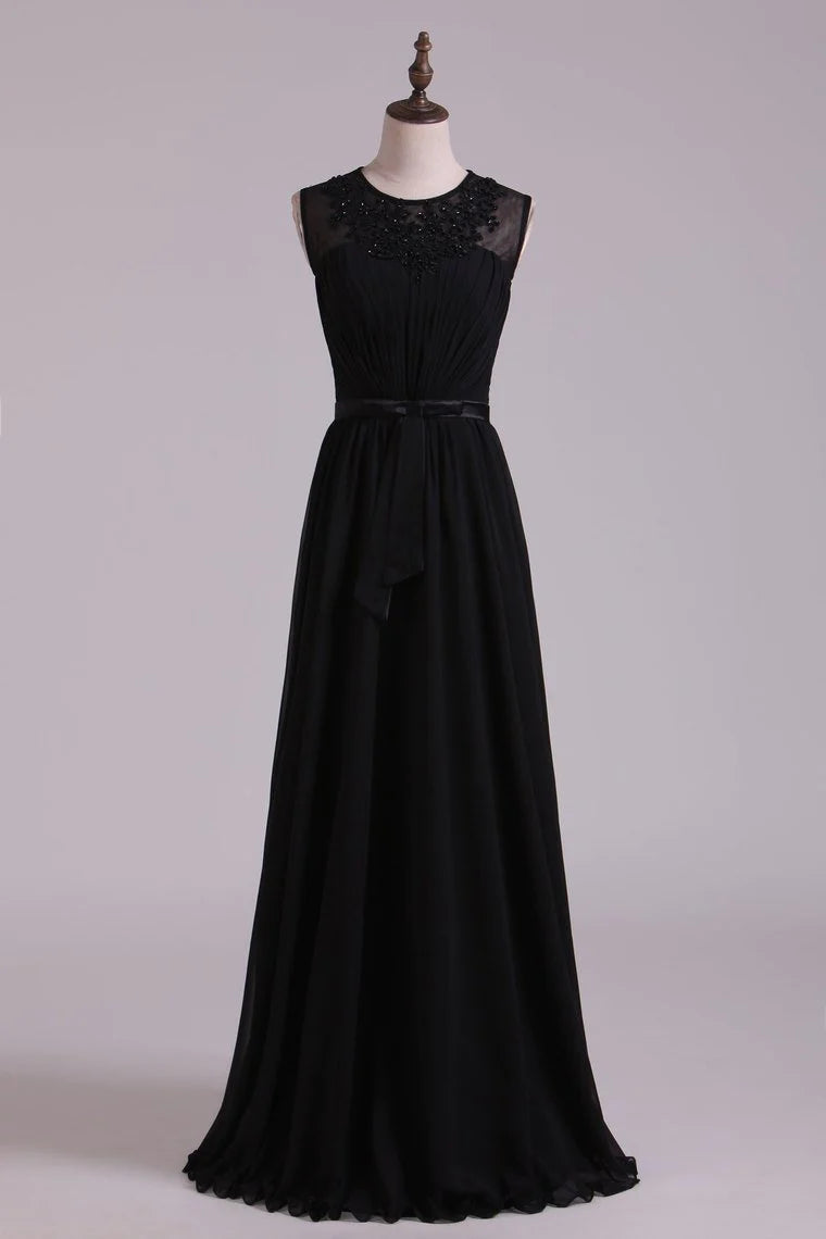 Scoop A Line Party Dresses Chiffon With Ruffles & Sash