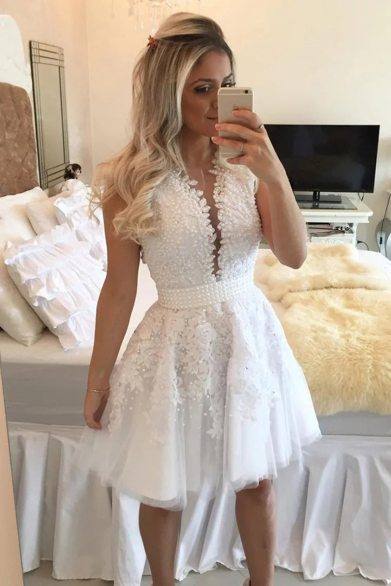 Scoop Homecoming Dresses A Line Tulle With Applique And Beading