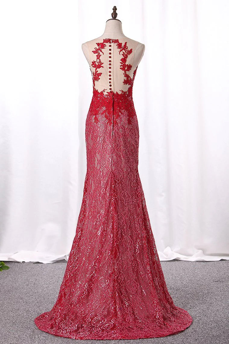 Scoop Lace Party Dresses Mermaid/Trumpet With Applique Detachable