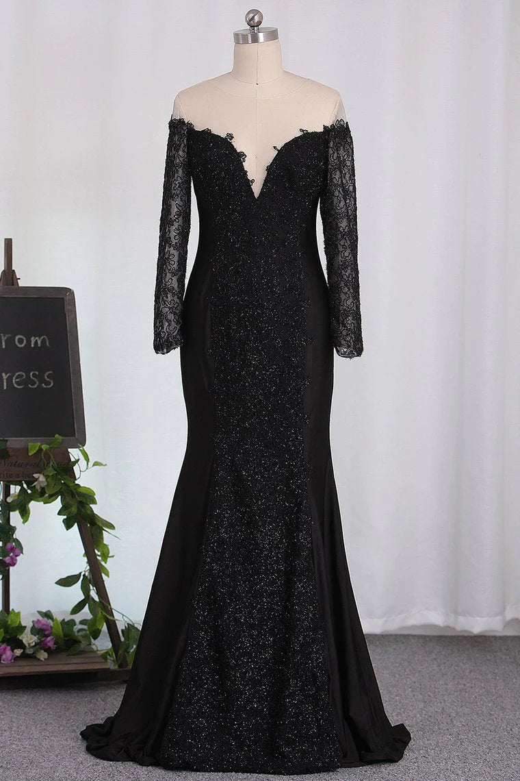 Scoop Long Sleeves Spandex Mermaid Party Dresses With Applique