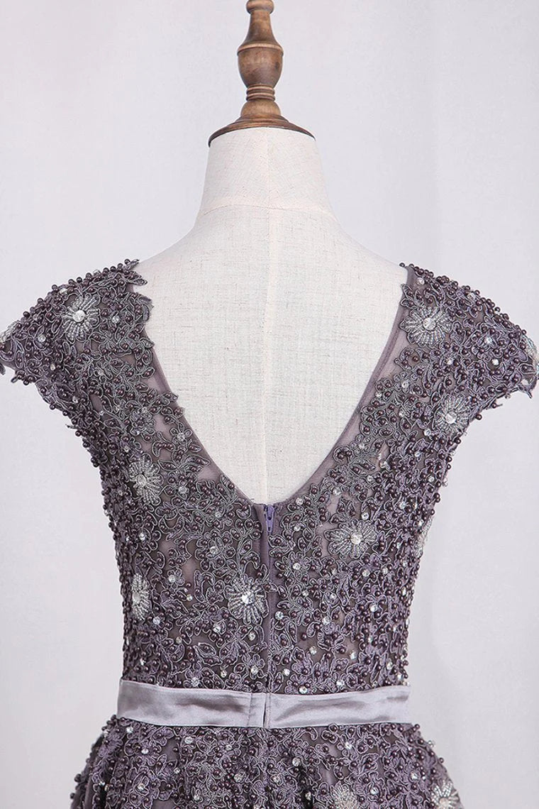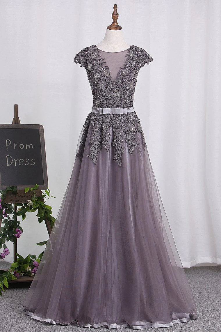 Scoop Tulle Party Dresses With Applique And Beaded Bodice