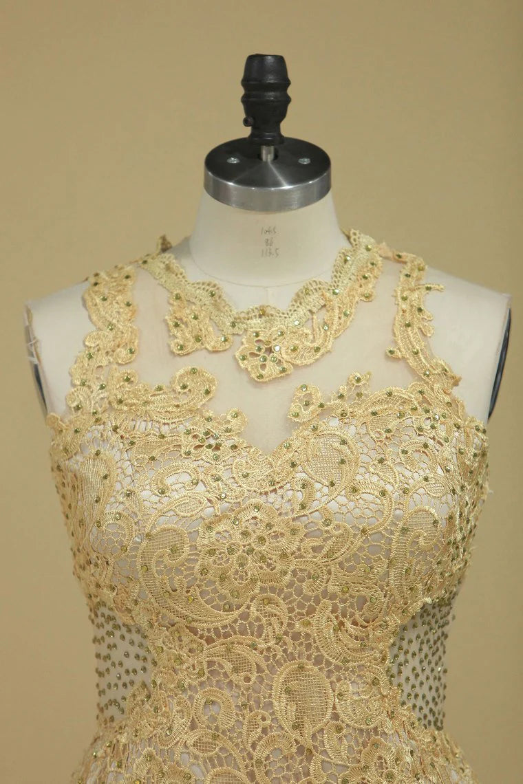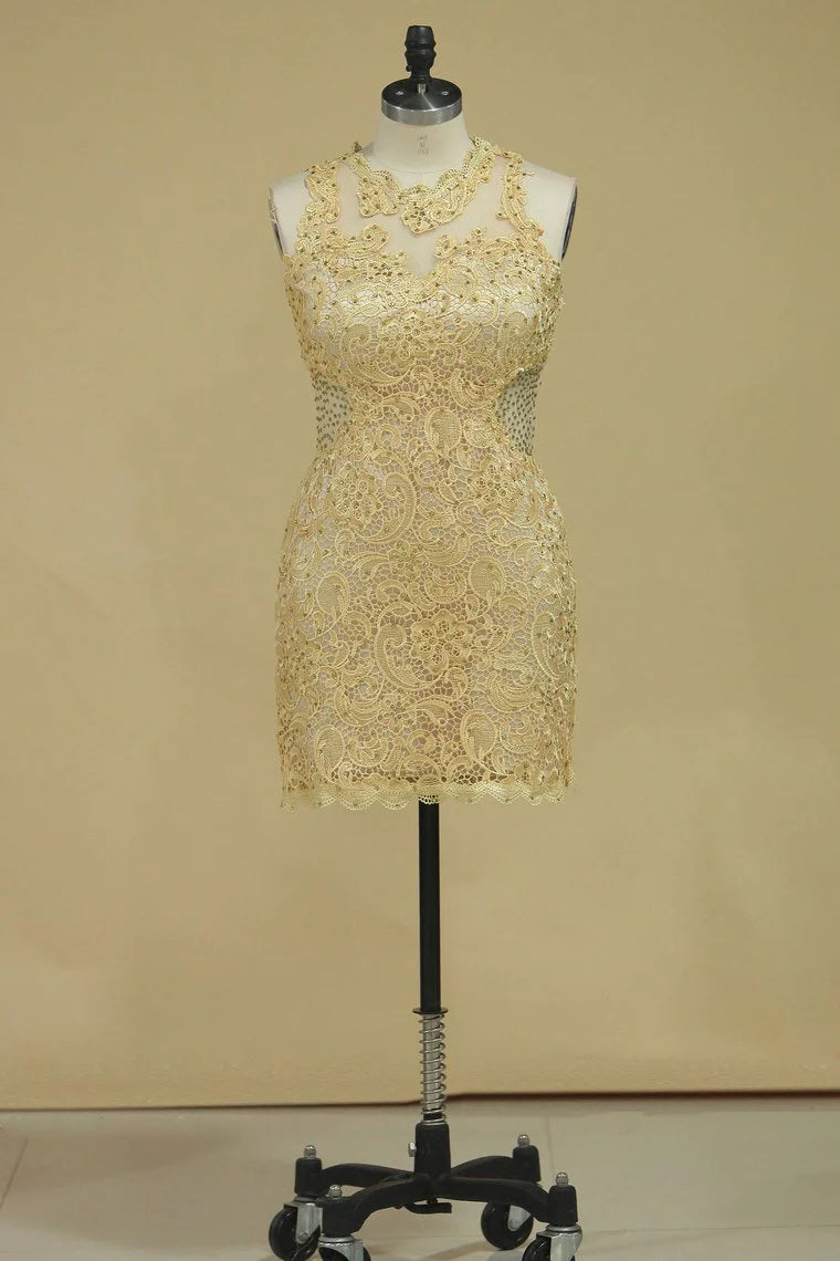 Scoop With Applique Sheath Party Dresses Lace Short/Mini