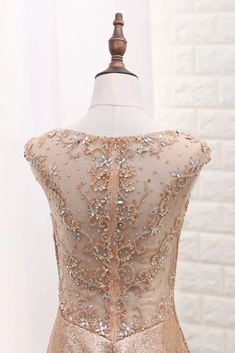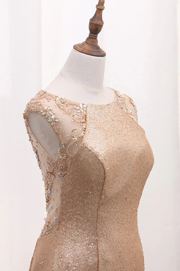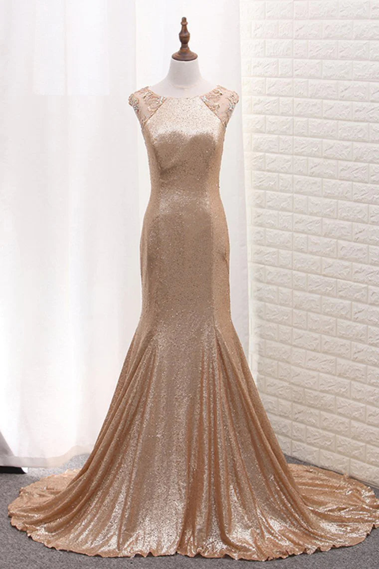 Sequins Party Dresses Scoop Mermaid With Beads Sweep Train