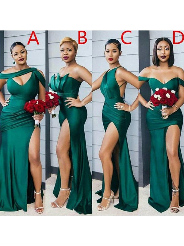 Sheath/Column Off-the-Shoulder Ruched Sleeveless Sweep/Brush Train Bridesmaid Dresses