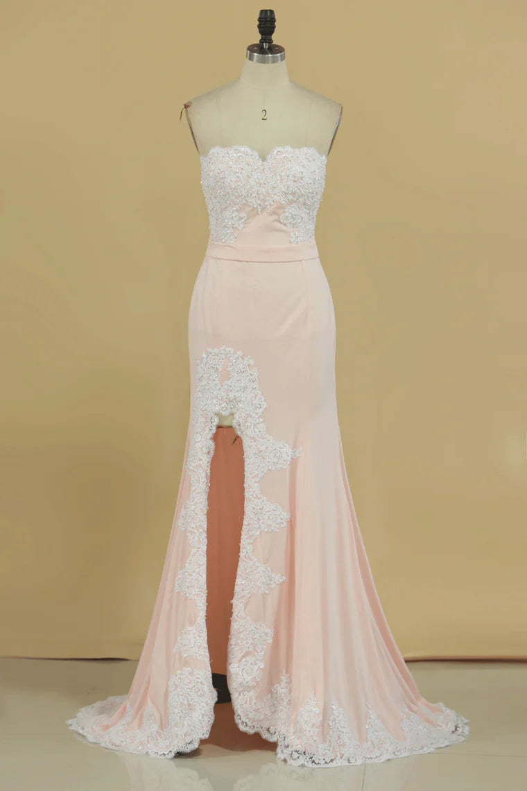 Sheath Sweetheart With Slit And Applique Party Dresses