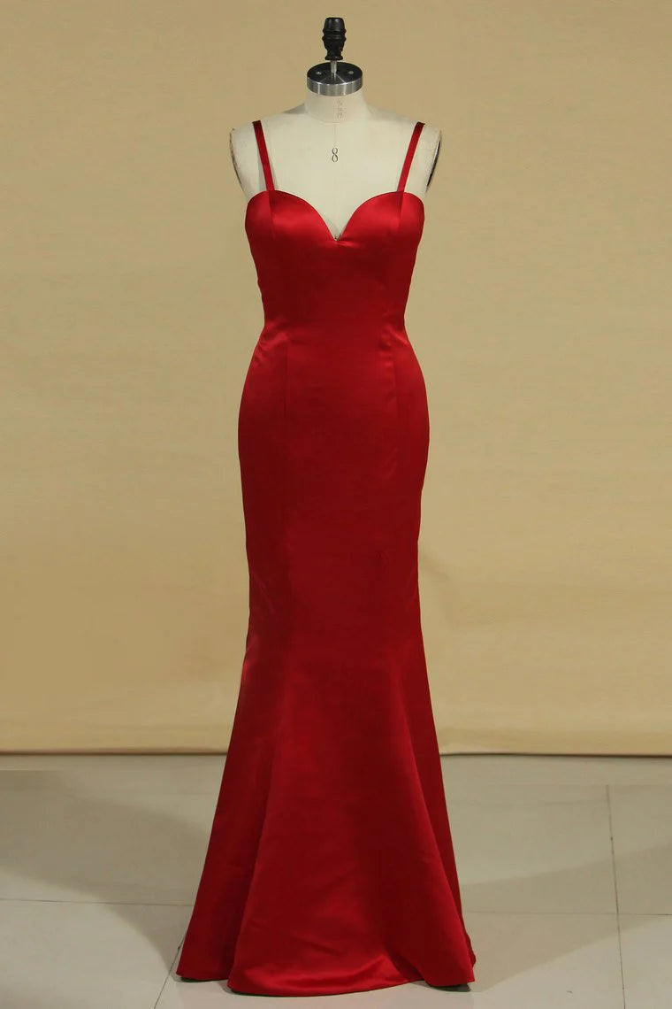 Spaghetti Straps Mermaid Party Dresses Satin Floor Length