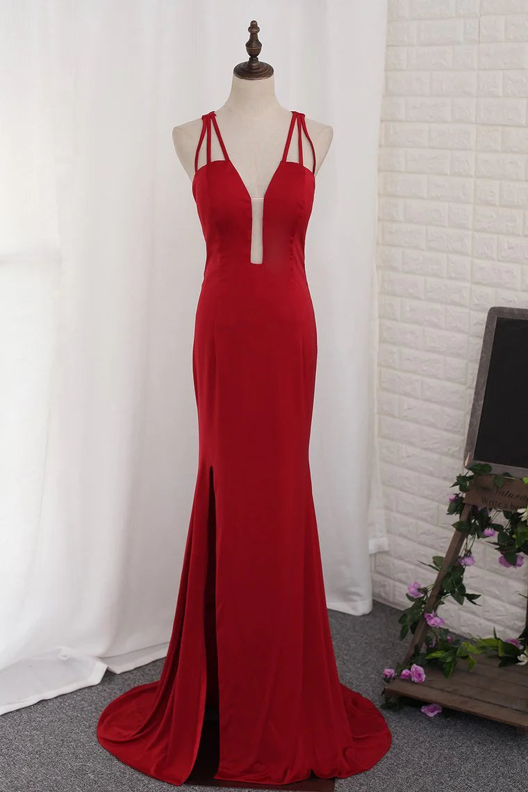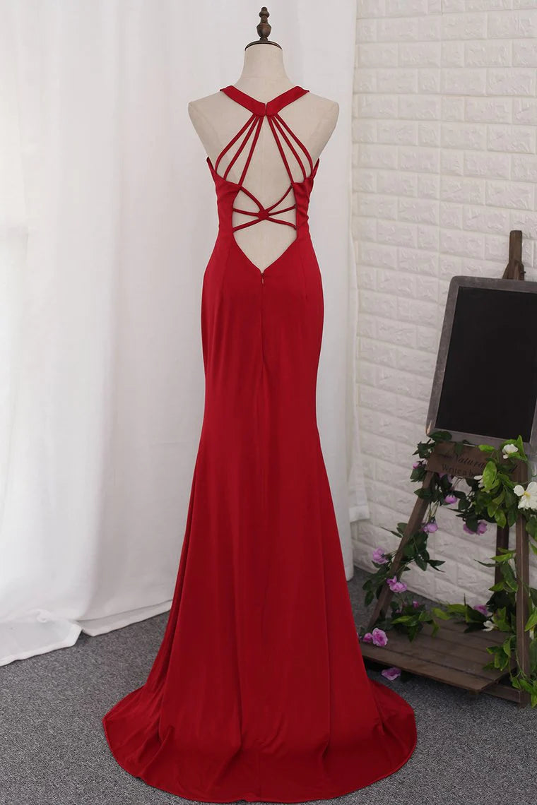 Spaghetti Straps Open Back Party Dresses Mermaid Spandex