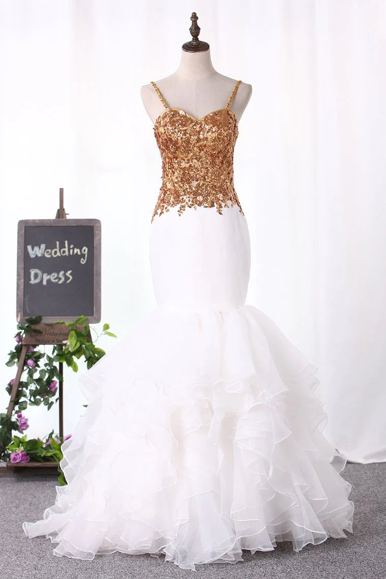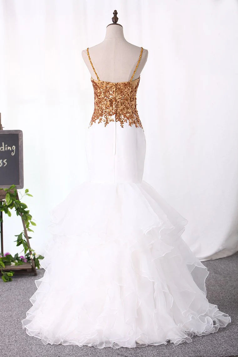 Spaghetti Straps Party Dresses Organza With Applique Mermaid