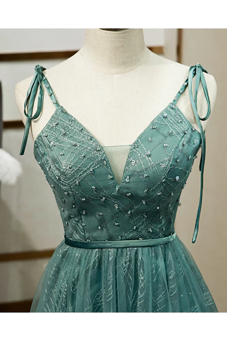Spaghetti Straps Tulle Modest A Line Evening Dress Long Prom Dress