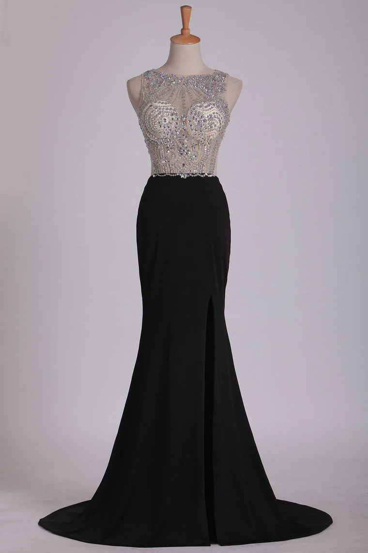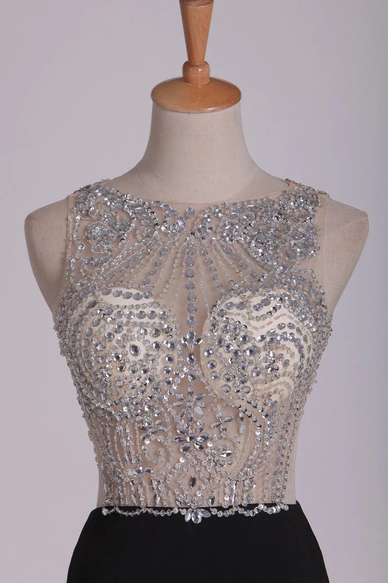 Spandex Beaded Bodice Party Dresses Scoop Open Back Mermaid