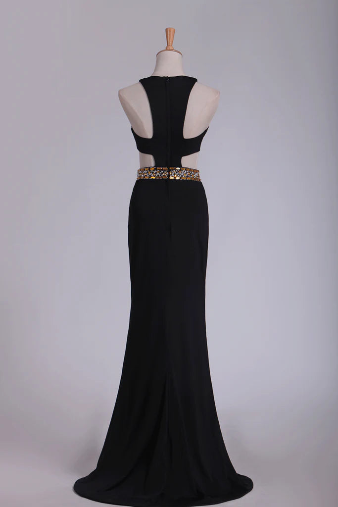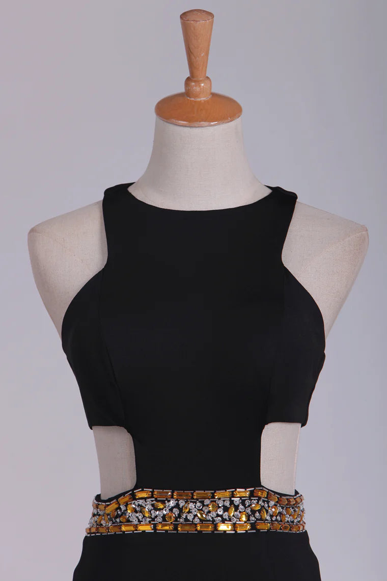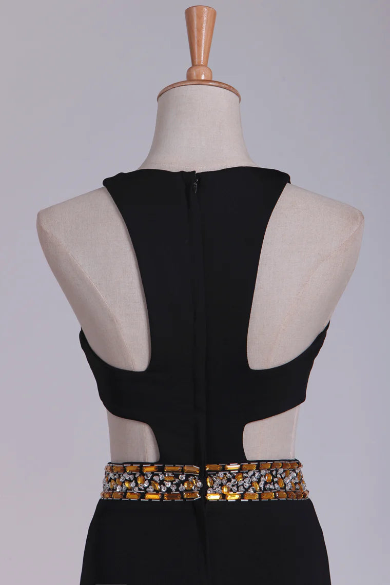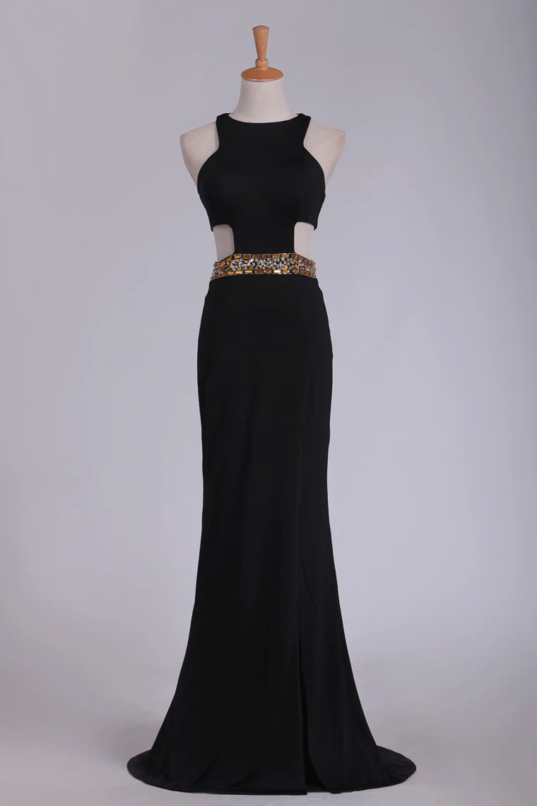 Spandex Scoop Party Dresses Sheath With Beading And Slit