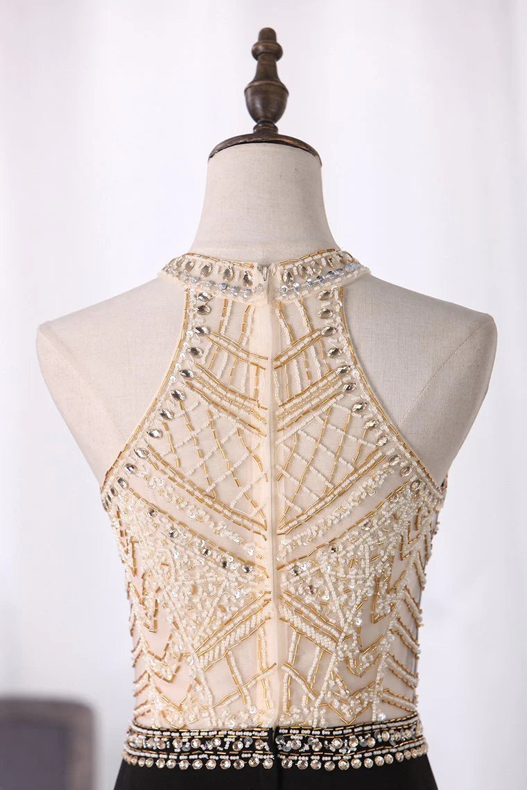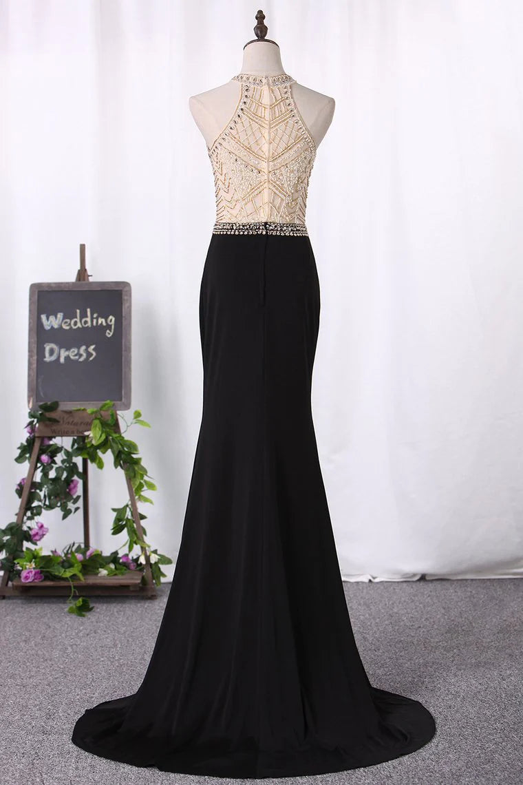 Spandex Scoop With Beading Mermaid Sweep Train Party Dresses