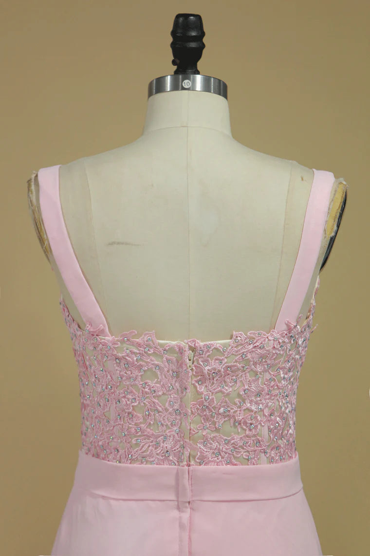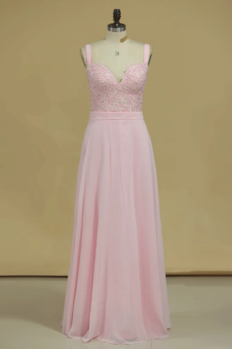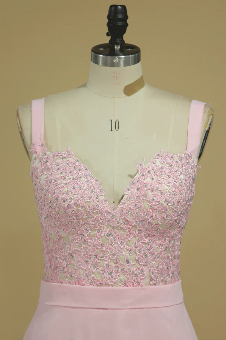 Straps Chiffon With Applique A Line Party Dresses Sweep Train