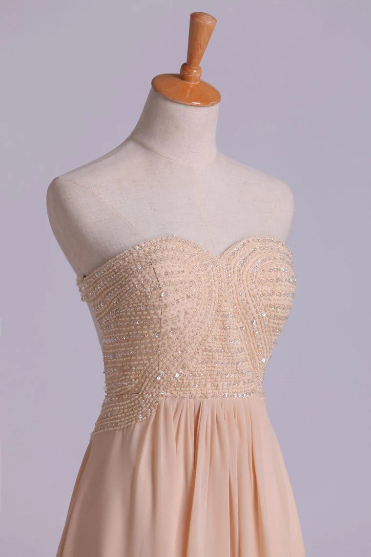 Sweetheart A Line Beaded Bodice Backless Party Dresses Chiffon