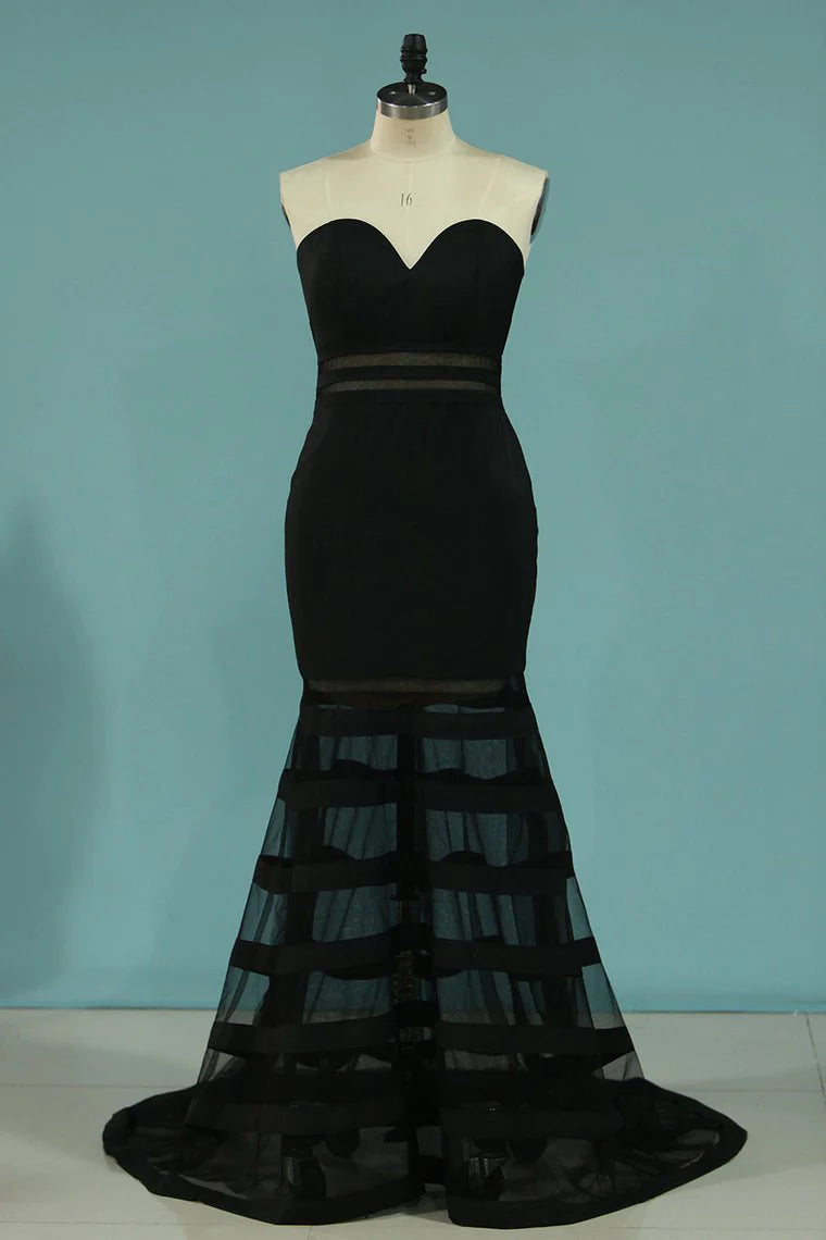 Sweetheart Mermaid Party Dresses Tulle & Chiffon Sweep Train