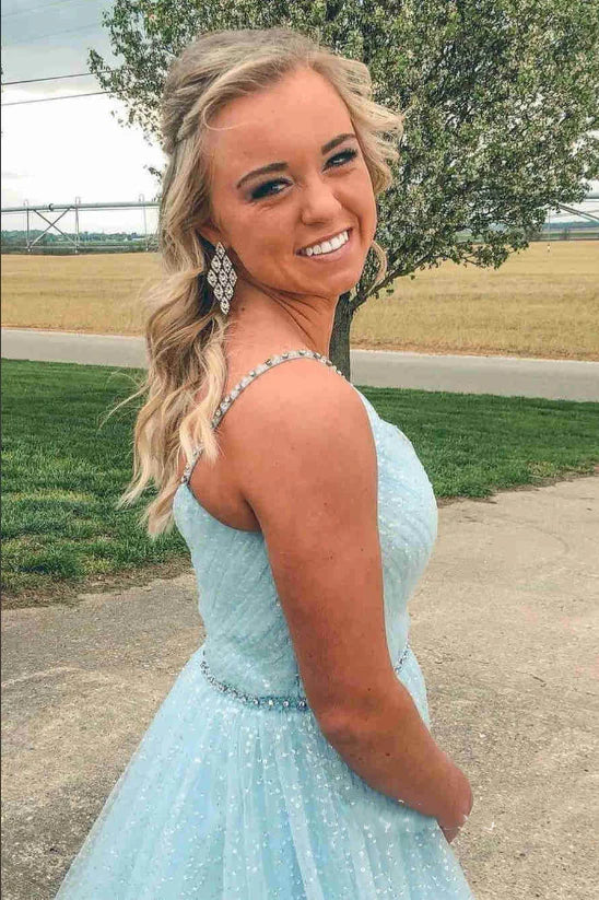 Sweetheart Neck Spaghetti Straps Lavender Beaded Prom Dresses Long Evening Dresses