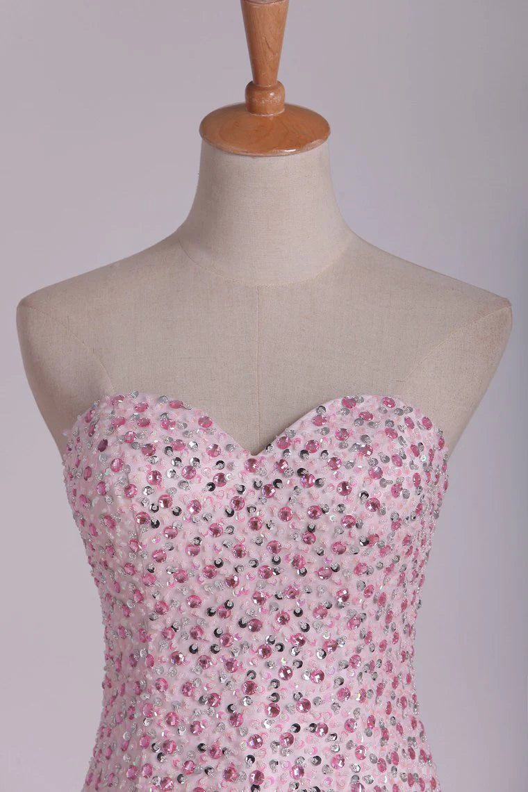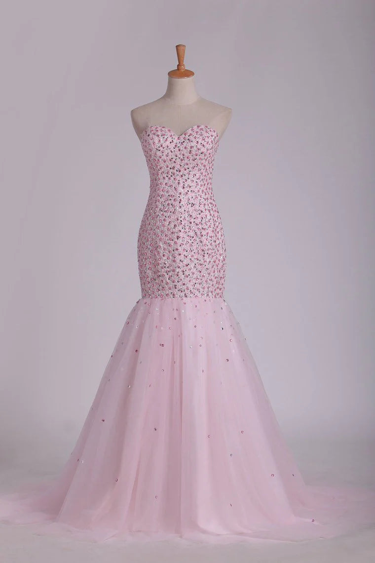 Sweetheart Party Dresses Beaded Bodice Mermaid Sweep Train Tulle