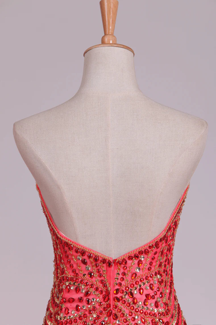 Sweetheart Party Dresses Tulle With Beading Mermaid Sweep Train