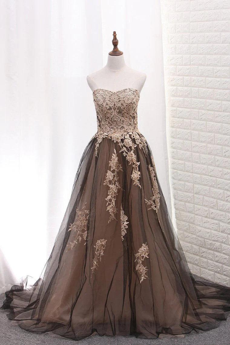Tulle Party Dresses A Line Sweetheart With Applique Sweep Train