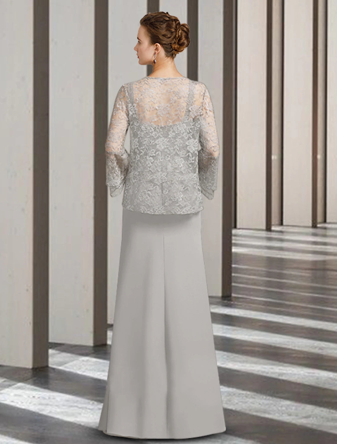 Two Piece Sheath / Column Mother of the Bride Dress Elegant Scoop Neck Floor Length Chiffon Lace Sleeveless with Appliques