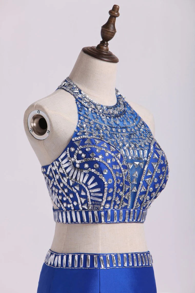 Two Pieces High Neck Mermaid Party Dresses With Beads