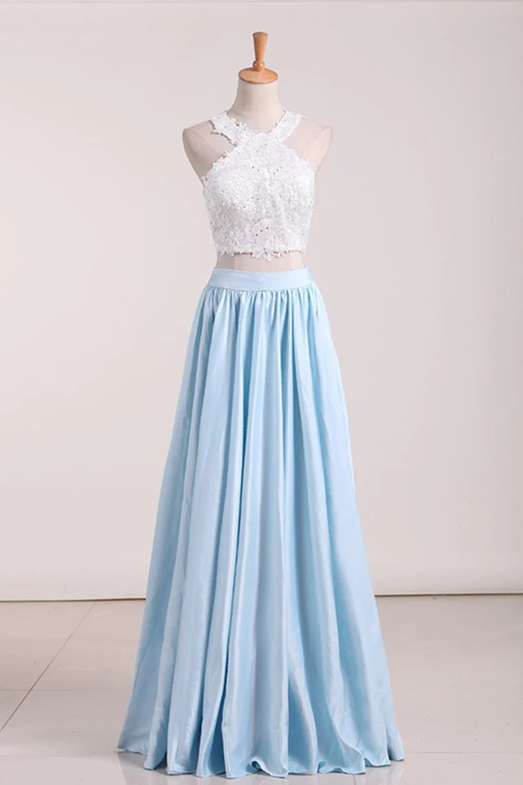 Two Pieces Party Dresses Satin With Applique Floor Length