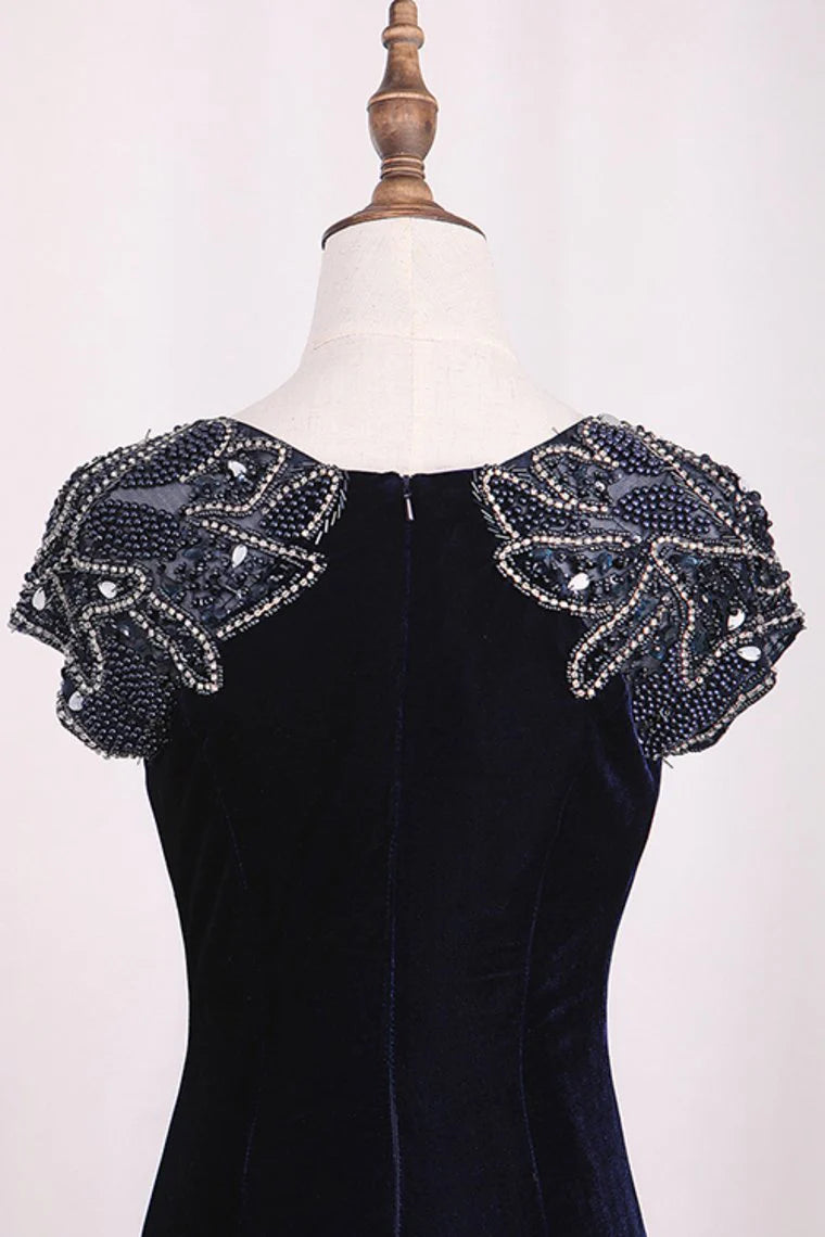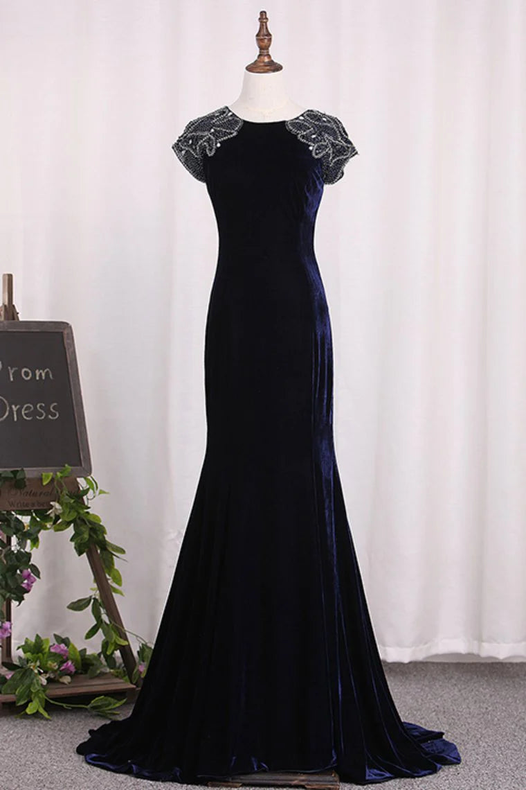 Velvet Scoop With Beading Party Dresses Mermaid Sweep Train
